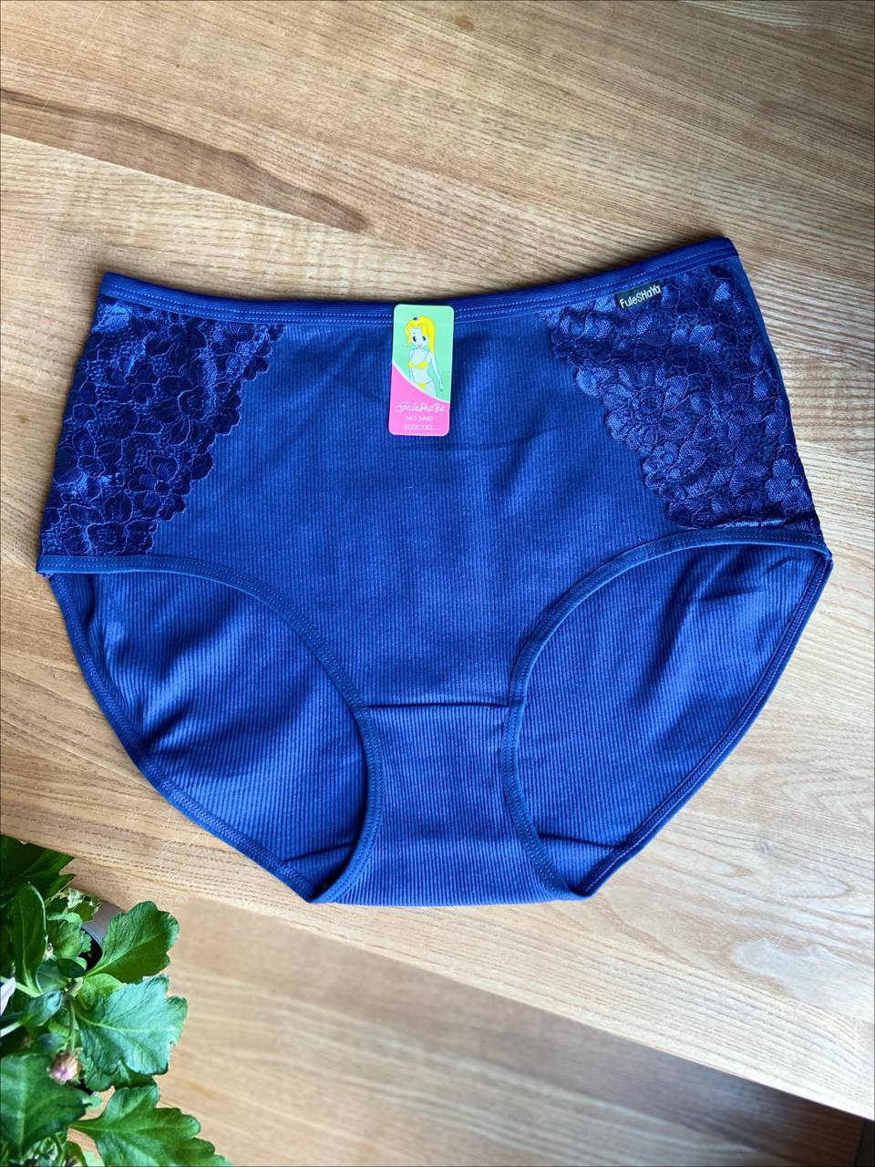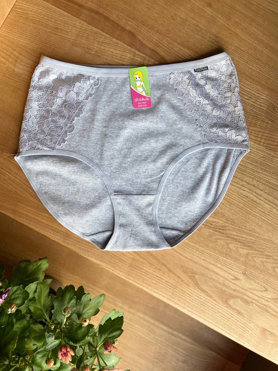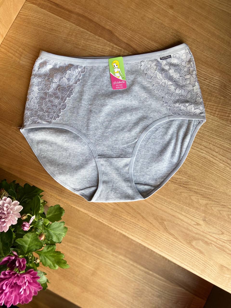 Батальні жіночі труси з бавовни в рубчик з мереживними вставками 3960SOL