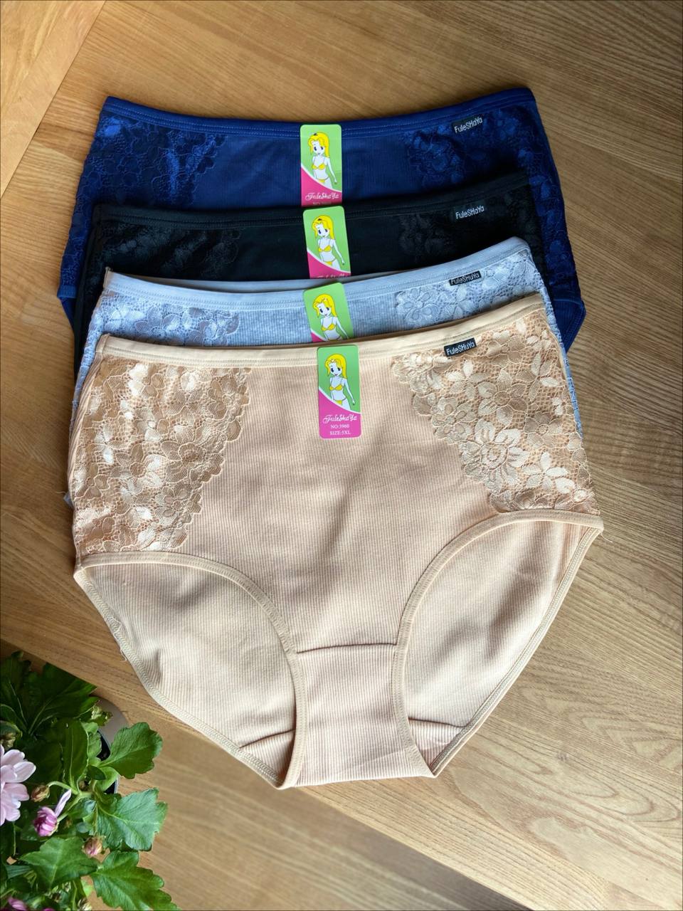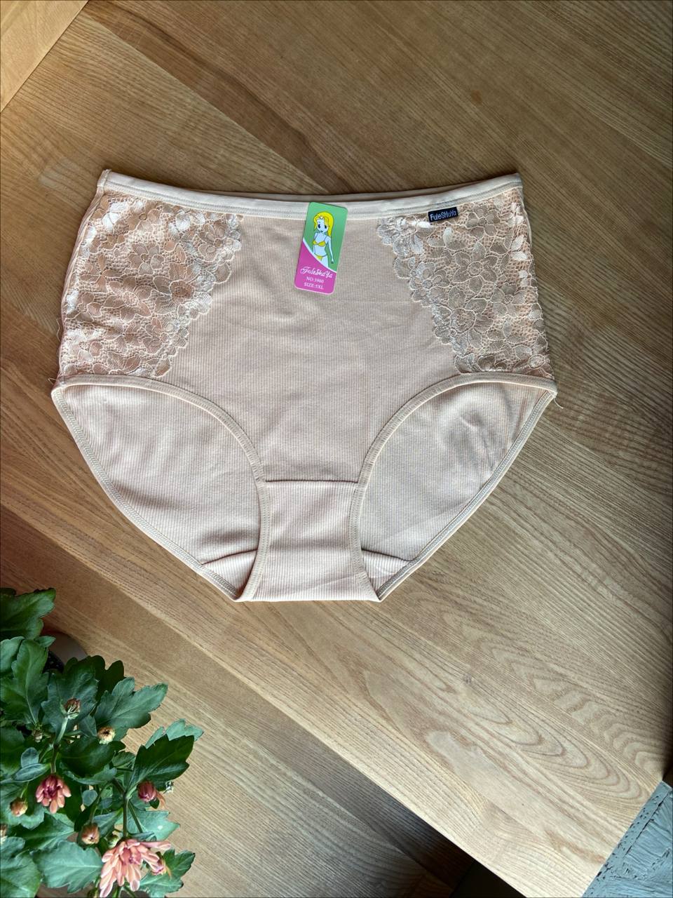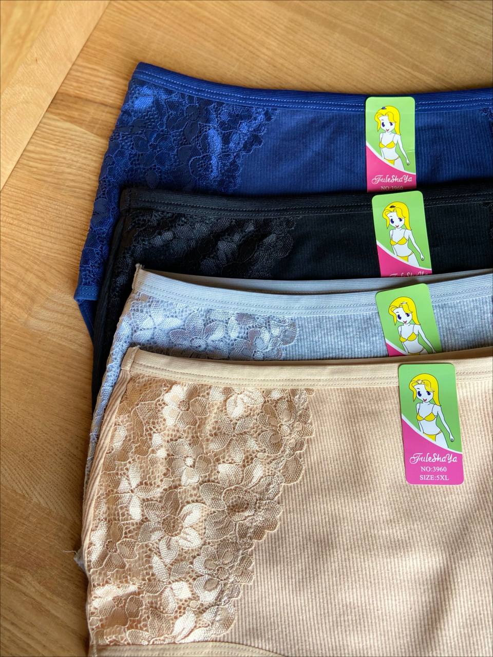 Батальні жіночі труси з бавовни в рубчик з мереживними вставками 3960SOL