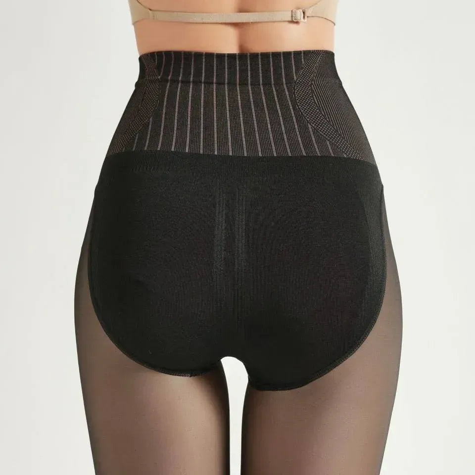 Колготи на високій посадці, із завищеною талією. Стопа без утеплення. Область талії та живота виконана з еластичного матеріалу, без утеплення, з імітацією трусиків, які мають невеликий ефект, що коректує. З ластовицею.