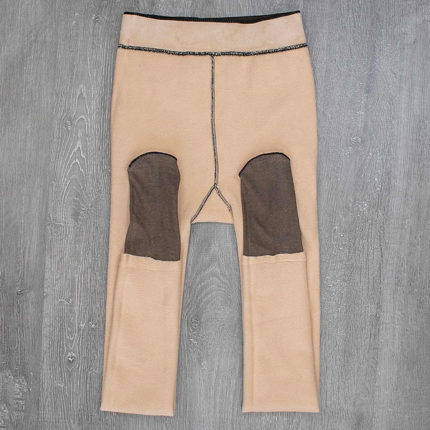 Комбінація флісу та капрону дозволяє створити візуальний ефект, ніби ніжки покриті колготками 20 Den. Виконані з флісової підкладки у тілесному відтінку, максимально наближеного до природного кольору шкіри та зовнішня частина колготок із тонкого капрону (чорного).